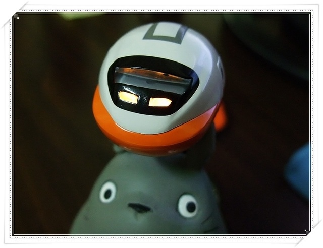 上頭(灰色區塊)的按鈕,按下去後,可以發光咧!(可置換電池,不用怕沒電)