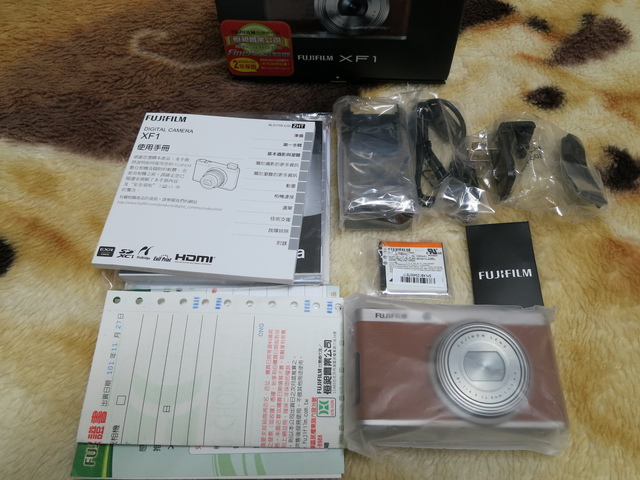 下層:XF1相機、充電器、原廠電池、手鍊帶