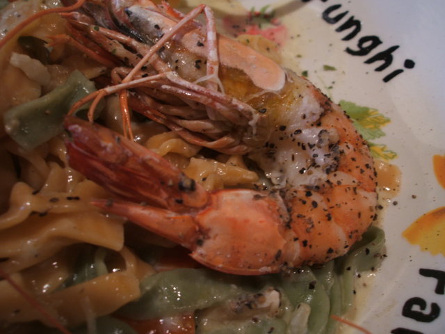*明蝦佐黑松露奶寬扁麵(白醬)* 麵條蠻Q且有咬勁,配著淡淡的奶香味,還有牽動細微的黑松露,讓這道料理有值得品嚐的的價值,比較感到遺憾的部分為二,(1)份量不多,令人頗為失落(好吃總是想吃多一點咩!)。(2)明蝦的新鮮度是不夠的,第一口咬下就很明顯感受到腥味,但被調味的鹽掩蓋後,已吃不出明蝦的鮮味.