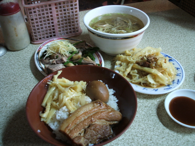 看著牆上的菜單,就點控肉飯 & 鴨肉冬粉 加上 鴨肉 / 青菜 / 筍絲三盤小菜打發這一餐。