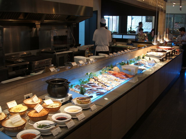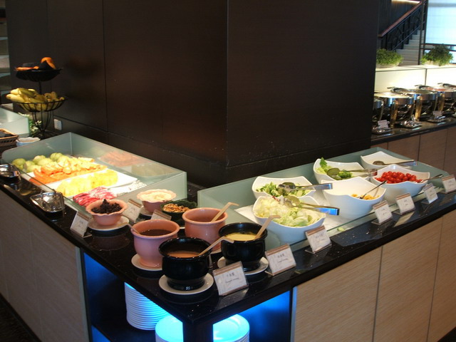 冷盤區:提供鵝肝、火腿、鮭魚等冷盤肉品,亦有麵包和果醬。