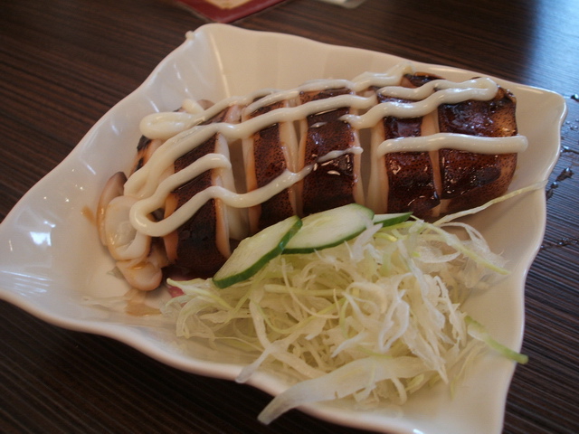 烤中卷:略烤手法,佐以沙拉醬(蠻奇怪的味道),口感還算好,只是不夠新鮮,肉質彈性不太夠。