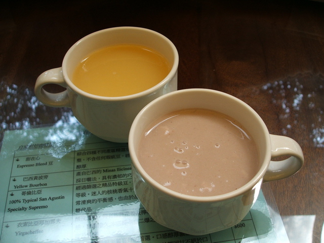 咖啡:這可要大大讚賞(雖然我不懂咖啡),魔女點的焦糖瑪琪朵,味道比她愛喝的星巴客優,看著她的表情就知道大大滿足啊!葉子選擇店家推薦的哥倫比亞咖啡,味道微酸,帶著一股香味,很合我愛的味道。