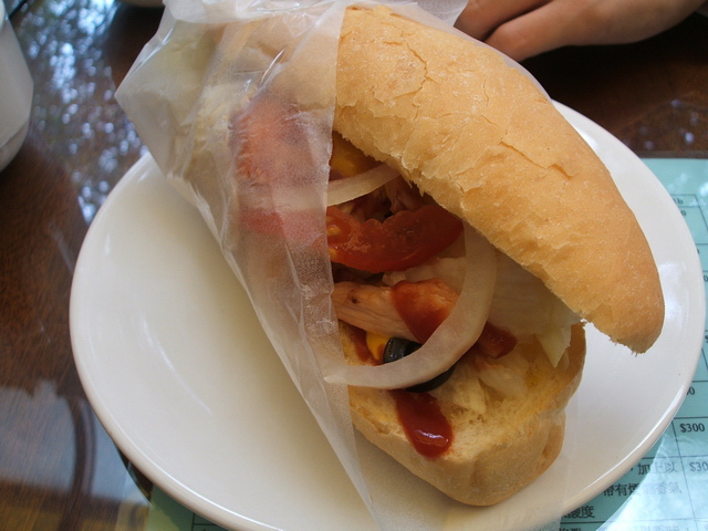 潛艇堡:魔女選擇燻雞口味,生菜與燻雞肉的份量不多,味道還不賴。但麵包是用硬皮的法國麵包,魔女不太愛這種搭配。