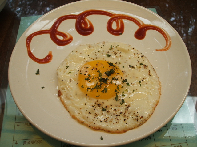甜在心Cafe,與葉子享用過的Nook or Dory同屬類型,都提供輕食早餐、午餐、下午茶等。早餐(套餐)價格,甜在心最貴的B餐為$150(Nook & Dory 皆為180)。店門外的樹,讓人感受到一股綠蔭下的悠閒感,與Nook那種格式採光的型態,有不同的味道。