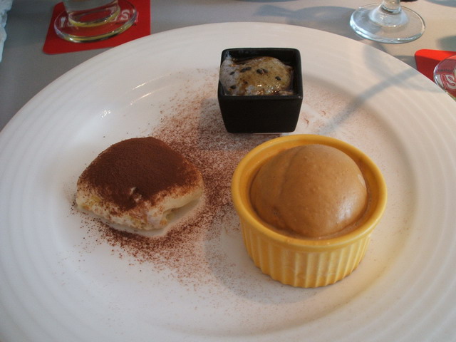 甜點&飲料:今日果汁為鳳梨汁,現榨的果汁就是棒(當然水果也要新鮮)。甜點有三種選擇,葉子&魔女各自選擇「綜合拼盤」「冰淇淋咖啡凍」,綜合拼盤有「提拉米酥、芝麻奶酪、焦糖冰淇淋」。葉子建議點選綜合拼盤,一次可以吃到三種口味甜點。