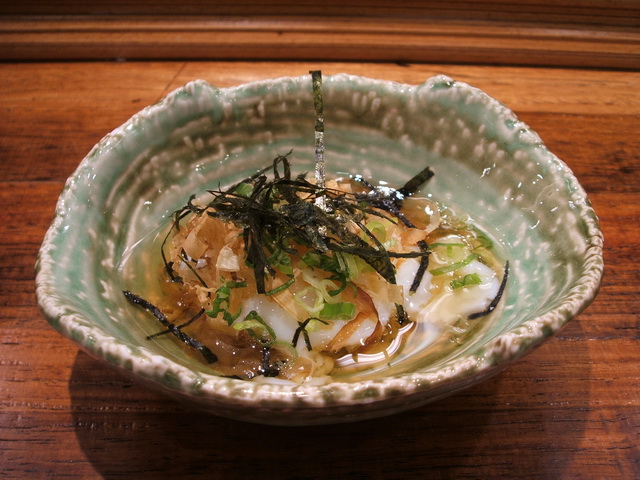 溫泉蛋:葉子誤點的一道小品,就是調著和風醬汁的太陽蛋。