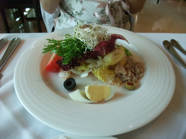 香烤鴨佐紅酒醬汁:魔女覺得很單調普通的一道(她原想點羊排)。若單吃鴨肉,其口感單調了些,需佐紅酒醬汁入口,才會有味覺的層次。那帶點苦味的紅酒醬汁,反而凸顯鴨肉本身的味道!
