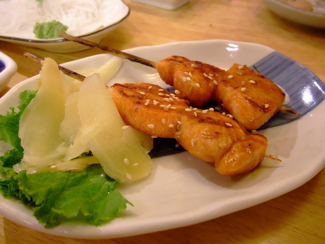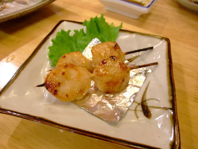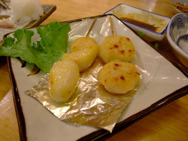 串燒:蘆筍培根、醬烤干貝、奶油干貝、鮭魚串、竹莢魚。每一串都沒有另葉子失望,除了醬烤干貝的size有點縮水外,其餘都維持一貫水準(看老爸吃得快樂最重要啦~哈哈)