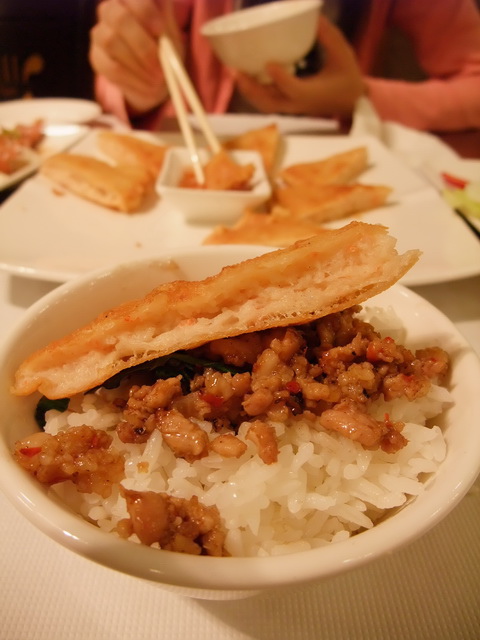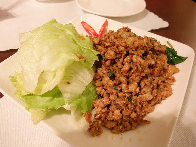 打拋豬肉:拌入九層塔,味道挺特別的!和著生菜葉吃,口感不錯喲!(若拌飯吃,反而覺得遜色)