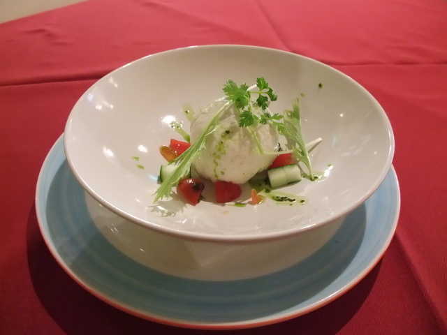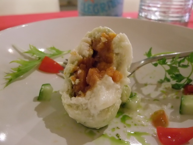 羅勒魚慕斯:為一冷盤,用鮮魚裹著餡料(西班牙XXX...忘記了~sorry~),味道挺爽口,但魚肉屬於鬆軟口感,不是很愛。(但Lucca的前菜,常有驚喜,如同麵包佐料醬一樣! ^_^)