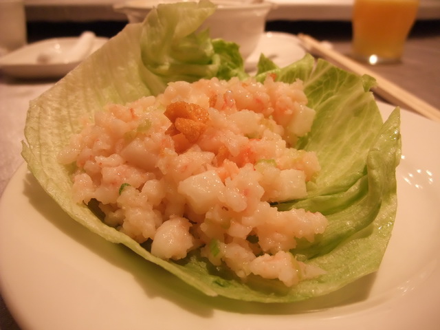 生菜明蝦鬆:鮮脆的美生菜裹住滿滿的明蝦鬆,每一口盡是滿足!(超愛這一道菜~)
