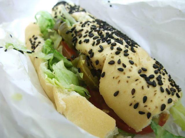 但清爽的芝麻麵包搭配塔塔辣雞&滿滿蔬菜的內餡