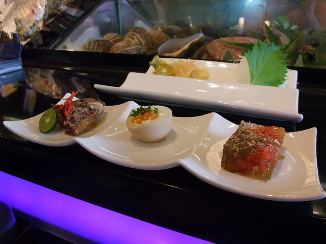 前菜(水雲凍, 醉蛋, 白鯧南蠻漬)