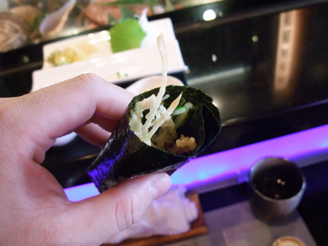 日式料理一直不是葉子的強項(通常都記不住魚的名字等~呵呵),而今天有幸透過可樂大等前輩的引領,讓葉子&魔女再次享受(東雨後)一頓舒服且品質兼顧的好店!整體而言,對於這幾道料理,葉子&魔女最愛的是:干貝絲粥、干貝佐海膽、鹽烤青魽、城下鰈魚、炸牛蒡手捲、微炙紅喉nigiri、水雲醋、甜蝦、起士片、花枝油魚子幾道,而鹽烤青魽&微炙紅喉nigiri更是讓葉子難忘,尤以紅喉入口的鮮嫩口感勝過葉子喜愛的微炙鮭魚肚!