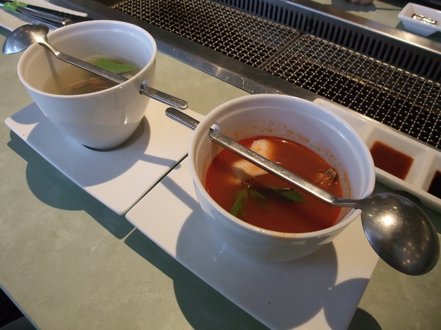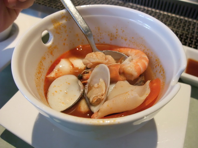 湯物:蕃茄海鮮湯、大蒜蛤蜊湯