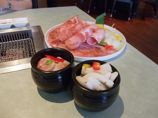 烤物:原燒豬肉拼盤、無骨雞腿、香烤飛捲條