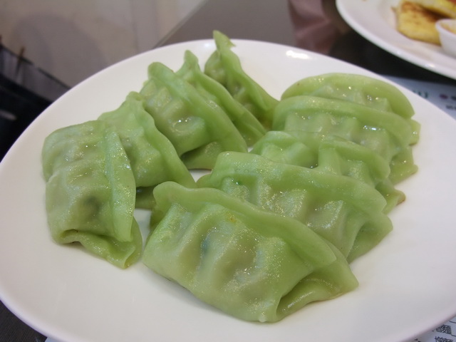 煎餃:蔬菜外皮的煎餃,還是葉子第一次在早餐店吃到!而且一份只要$30(有十顆),很便宜的一份附餐點,推薦一下。