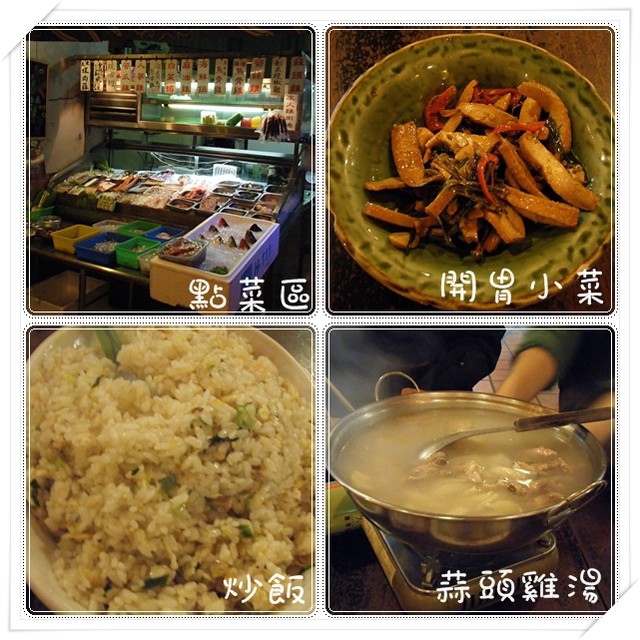 蒜頭雞湯:滿滿的料(當然,蒜頭更是多),雞肉夠嫩,且湯頭也算煮得香,大夥喝著很爽快啊!但印象最深刻的卻是許久許久之前在烏家莊吃過的蒜頭雞湯(不知道還有沒有賣)。