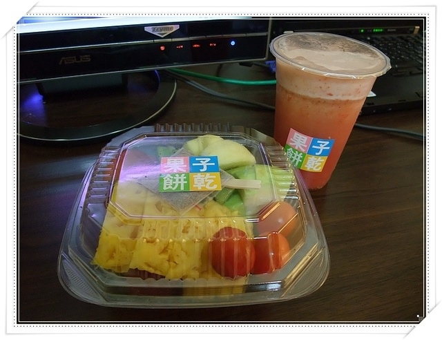 果子餅乾是一間現打果汁專賣店,除了基本果汁款式外,亦有水果沙拉和輕食三明治餐點(當然,若要宴客用的拼盤,也可以詢問價格)...........這間果汁店,算是葉子有路過勝利路,唯一選擇的飲料店,且讓不愛吃水果的葉子,有一個懶人補充的水果中繼站(其實我很愛吃,但只愛吃媽媽切好的....因為都不會有品質問題,不會吃到品質差的....)........或許,不是最優的店,但相對葉子而言,是一間感覺很對,且東西合胃口的果汁店!