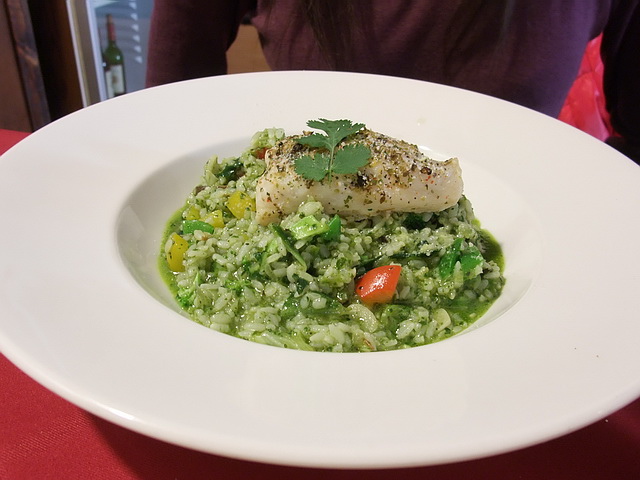 一杯氣泡水,那透過檸檬片後的世界,隨著,羅勒風味燉飯,回到手上的湯匙!那鰈魚的大器與鮮度,依舊是Lucca用料的品質;而重口味的燉飯,更隨著氣泡起舞著,忘記那冷後的油膩
