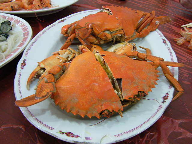 這也是每一桌都有點的美味佳餚 清蒸紅蟳,雖然不是吃蟹的季節,但那蟹黃、蟹肉的品質,老爸也吃得快樂且覺得值得!老爸:「先吃再說,膽固醇先放一旁.....XD」