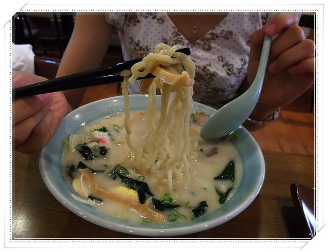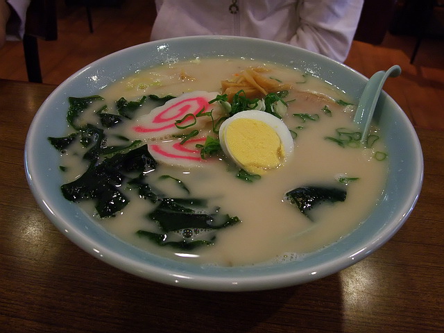 強棒豚骨拉麵:除了拉麵外,配料有海帶芽、蛋、魚板、筍絲等,看似豐富的一碗拉麵。