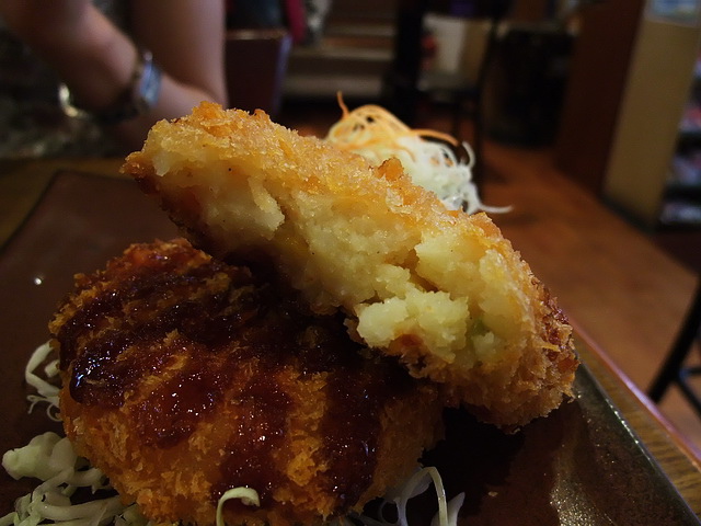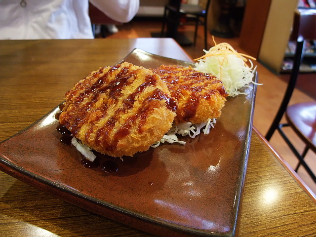 可樂餅:有三種口味(咖哩、蔬菜、起士),但一份只有兩個,葉子就選擇蔬菜、起士(葉子:為何不是三個..Orz..)。口感鬆軟而不油膩,葉子覺得起士口味,可以吃看看~