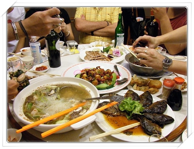 因為大家比預期晚到些,且廚師、阿姨哪管得著你,不一會,就一股腦兒地塞滿整個圓桌!(葉子:真正上菜有夠快好險有可樂大、馬頭哥發難處理...免於大夥一人端一盤菜吃....XD)