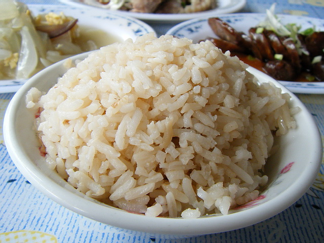 豬頭飯:米洗好後,放入熬煮豬頭的高湯(放心,不是你的頭)一起煮,其米飯會有特殊的香氣 (葉子:網路介紹,寫得如此誘人,怎知..........>"<.......>)