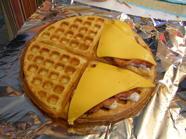 (洪博:哪有人吃鬆餅吃鹹的!...葉子:是真男人就是要吃鹹口味的鬆餅,甜的是娘們吃的....XD...)