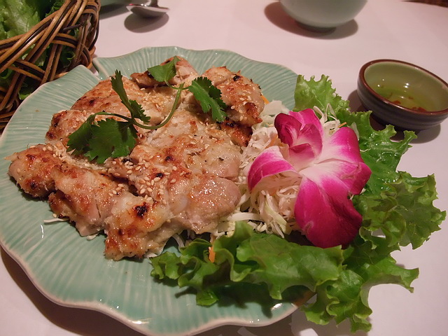 泰式烤雞腿:可沾特製魚露和生菜一起享用,但可惜了這雞腿,嫩度OK~但沒什麼味道![]()