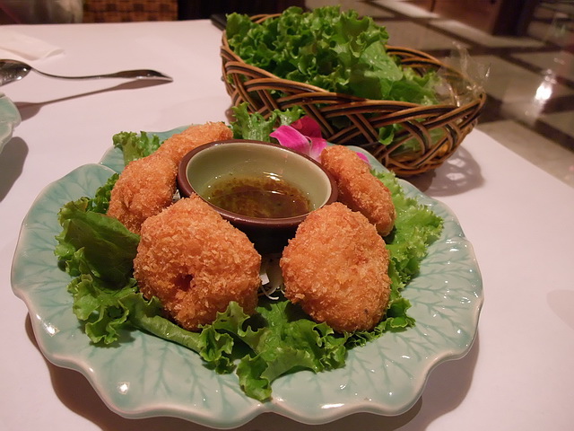 金錢蝦餅:四道菜內,就屬這一道最棒~口感比月亮蝦餅好很多~且給足五個~算是比椰汁蝦夠誠意許多!可搭生菜、梅醬享用~