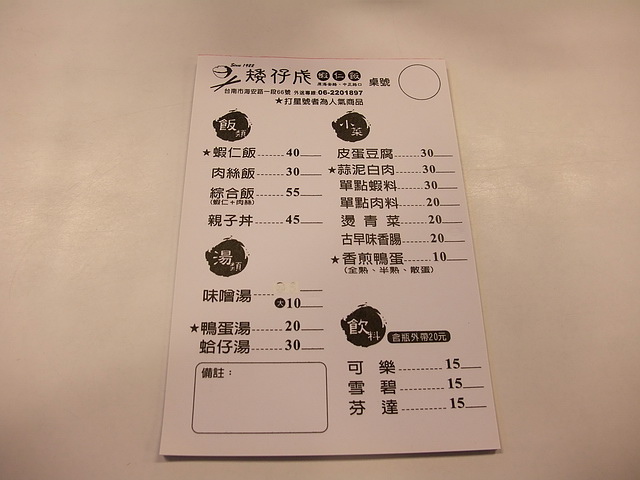 矮仔成蝦仁飯:店內店外都有座位,要吃什麼,單子填一填給阿姨,就會幫你處理啦.