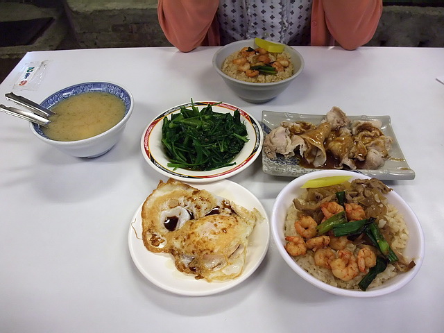 客人陸陸續續,有外帶、內用。一位老大哥,手一比一講,立刻出現一碗蝦仁飯、一碗味噌湯,這種感覺還真不賴!