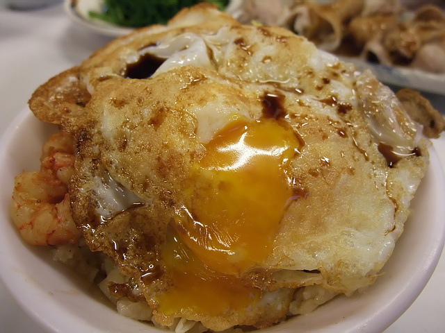 綜合飯:顧名思義,就是兩款主角(蝦仁+肉絲)。葉子覺得沒有必要多花$15買肉絲吃~直接點蝦仁飯或學葉子多點顆鴨蛋(請看下圖)都比較優!