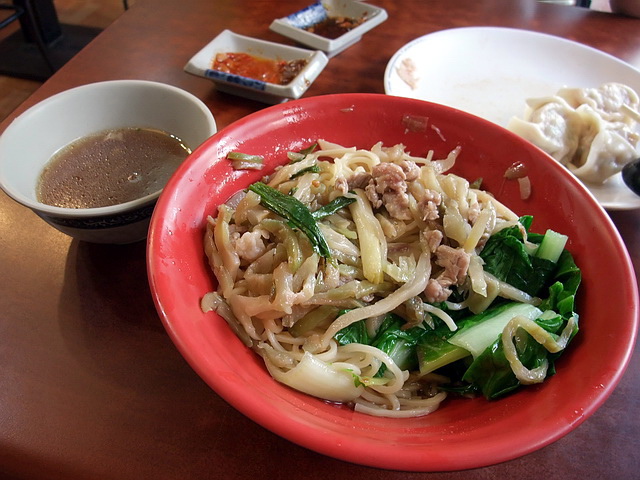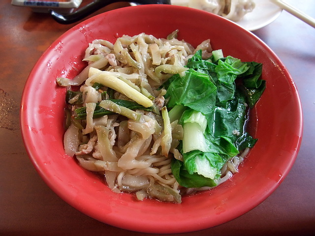 榨菜肉絲乾麵:雖然是很簡單的一碗榨菜乾麵,但使用的細麵條,是葉子喜歡的種類~再拌著豆瓣辣醬,這一碗乾麵的滋味,反而比起水餃好吃啊!