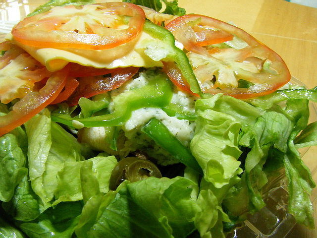 當然,彩虹城堡的潛艇堡很容易讓人膩,因為麵包只有一種,沒得選。最後,葉子選擇『彩虹城堡沙拉』,健康一次到位,一樣可選擇喜歡吃的口味(肉) & 佐醬