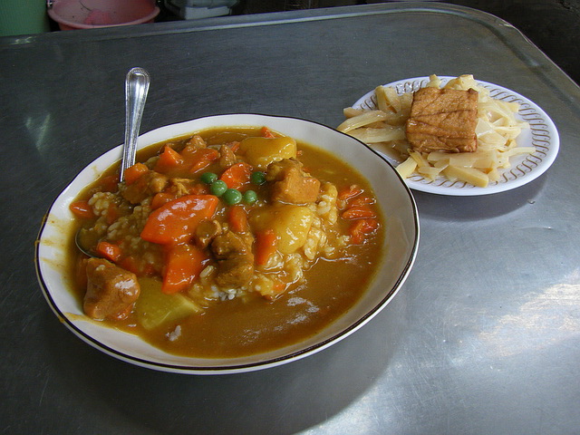 咖哩飯、筍子、油豆腐