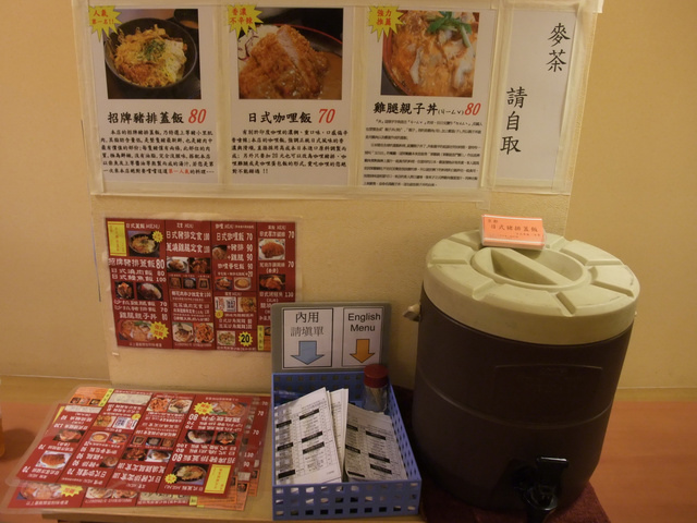 大致分為四類,有蓋飯、定食、咖哩、烏龍麵,尚有一些小品可選。價格也很便宜,一百上下即可享受(MENU)