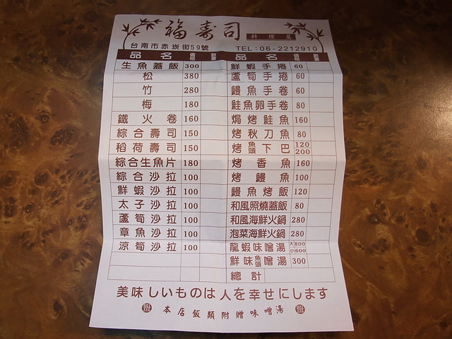福壽司:由民族路轉赤崁街,即可抵達(當然,前面也有燒烤、居酒屋店,這兩間,找時間來吃)