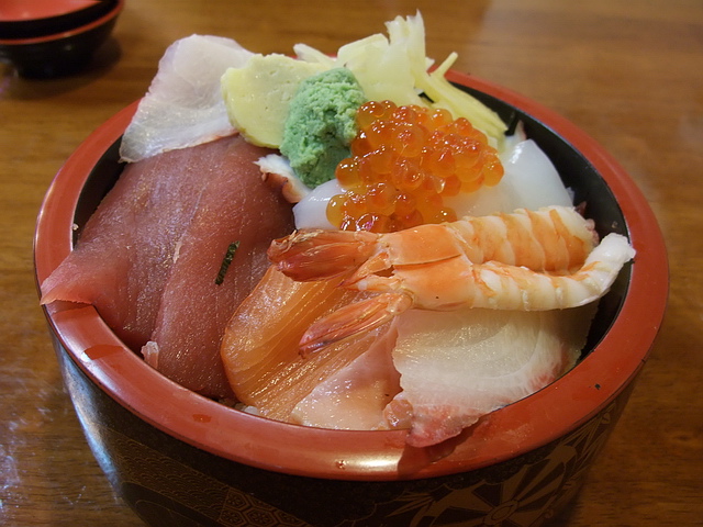 生魚蓋飯:與上一次彩虹所吃到的散壽司相比,福壽司的生魚蓋飯,比較像樣些!但若以此價格,葉子還是會選擇許久未吃的築地散壽司