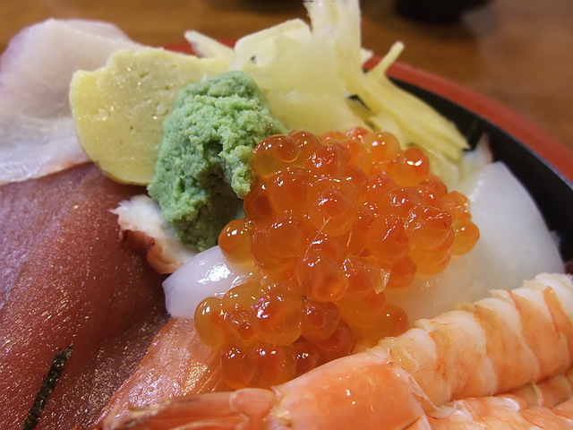 米飯一樣不優外,生魚片的大Size令人印象深刻,雖然魚生給的多樣,但鮭魚卵、花枝的鮮度都不及格~