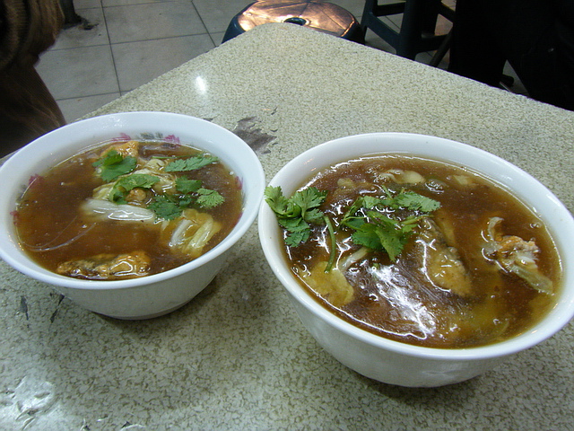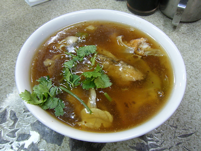 焿的口味尚可接受,不會甜稠到讓葉子受不了;土魠魚就不太好吃,老且偏硬,泡久一點會比較好吃吃些~當然,灑點辣椒粉,滋味更好~但魚肉不知道是不是放久放冷了~口感沒有預期的好味道