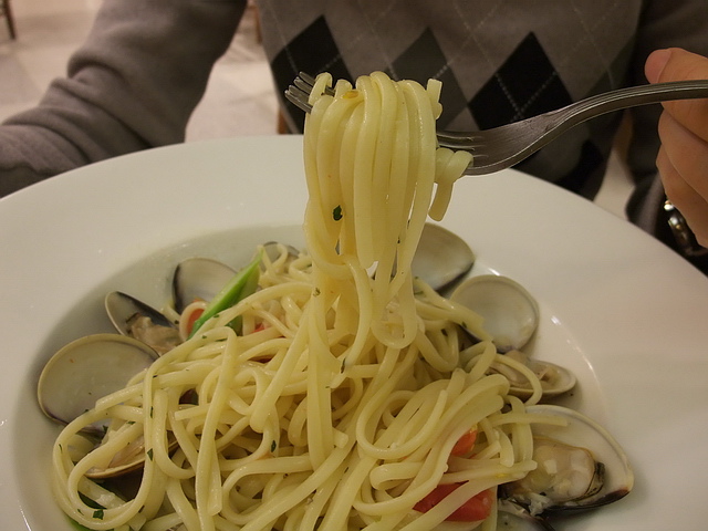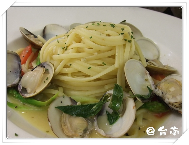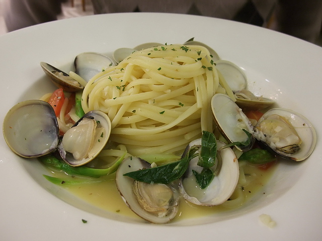 香料白酒蛤蠣義大利麵:不得不誇讚這一品義大利麵,麵條彈牙,拌著蒜香,鹹香恰好,淡著酒味~蛤蠣也新鮮!