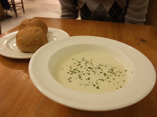 蘑菇濃湯、餐前麵包:濃湯偏鹹外,還不算太差;剛烤出爐的麵包反而好味!