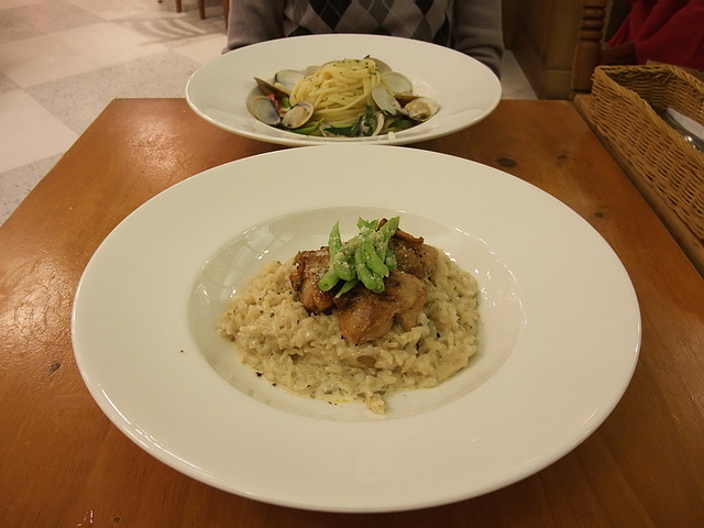 葉子&魔女的午餐:烤嫩雞佐牛肝蕈燉飯、香料白酒蛤蠣義大利麵