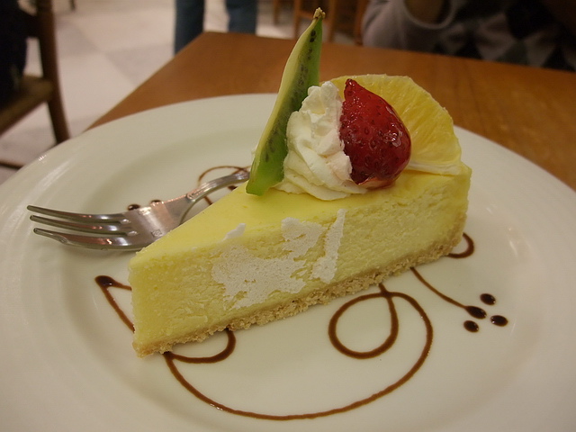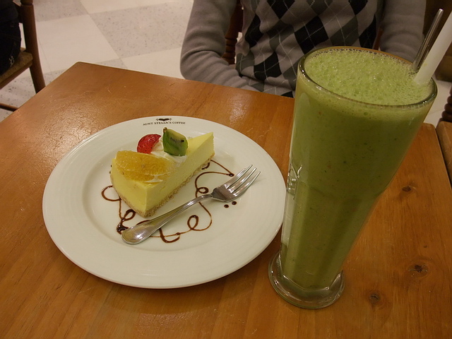 鮮果紐約起士蛋糕、美麗進化論:蛋糕為重乳酪口味,口感綿密香濃;現打的綜合蔬果汁,有波菜、柳丁、蘋果、蕃茄等,比一般提供的稀釋果汁好很多。如此的套餐甜點&飲料,多花個$150,絕對值得啊!(魔女:比之前帕莎蒂娜義大利屋的套餐+$250值得多啦