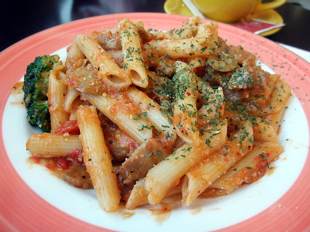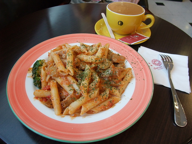 葉子&魔女的午茶:辣味雞肉管麵、熱拿鐵