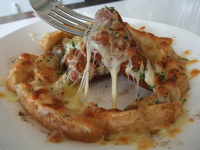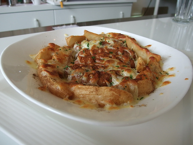馬鈴薯佐起士條:試吃價$150(原$180)。外圈為馬鈴薯、內圈為起士條。原認為是很有味道的焗烤盤,但烤得太乾,且沒什麼起士香味。除了馬鈴薯還可接受外,起士條就顯得乾硬,整體上,葉子不太推薦點。
